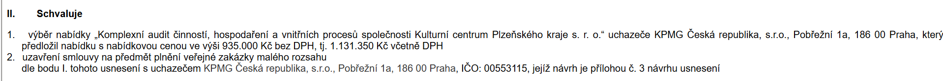 Plzeňský kraj objednal audit výše uvedené společnosti za více než milion Kč.