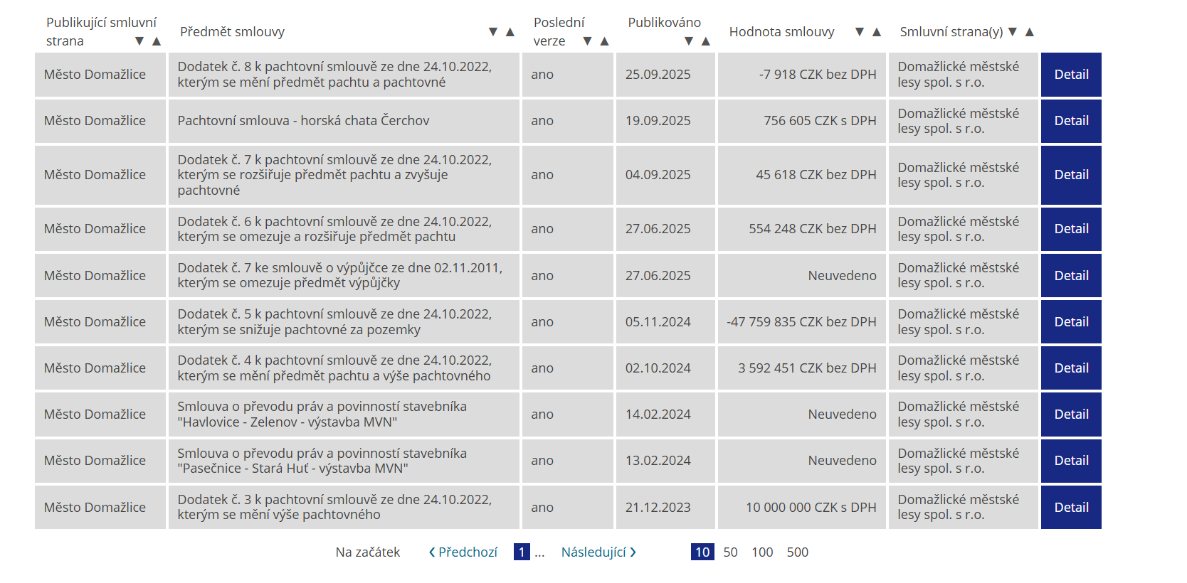 Přehled smluv město Domažlice - DML z registru smluv (strana 1):